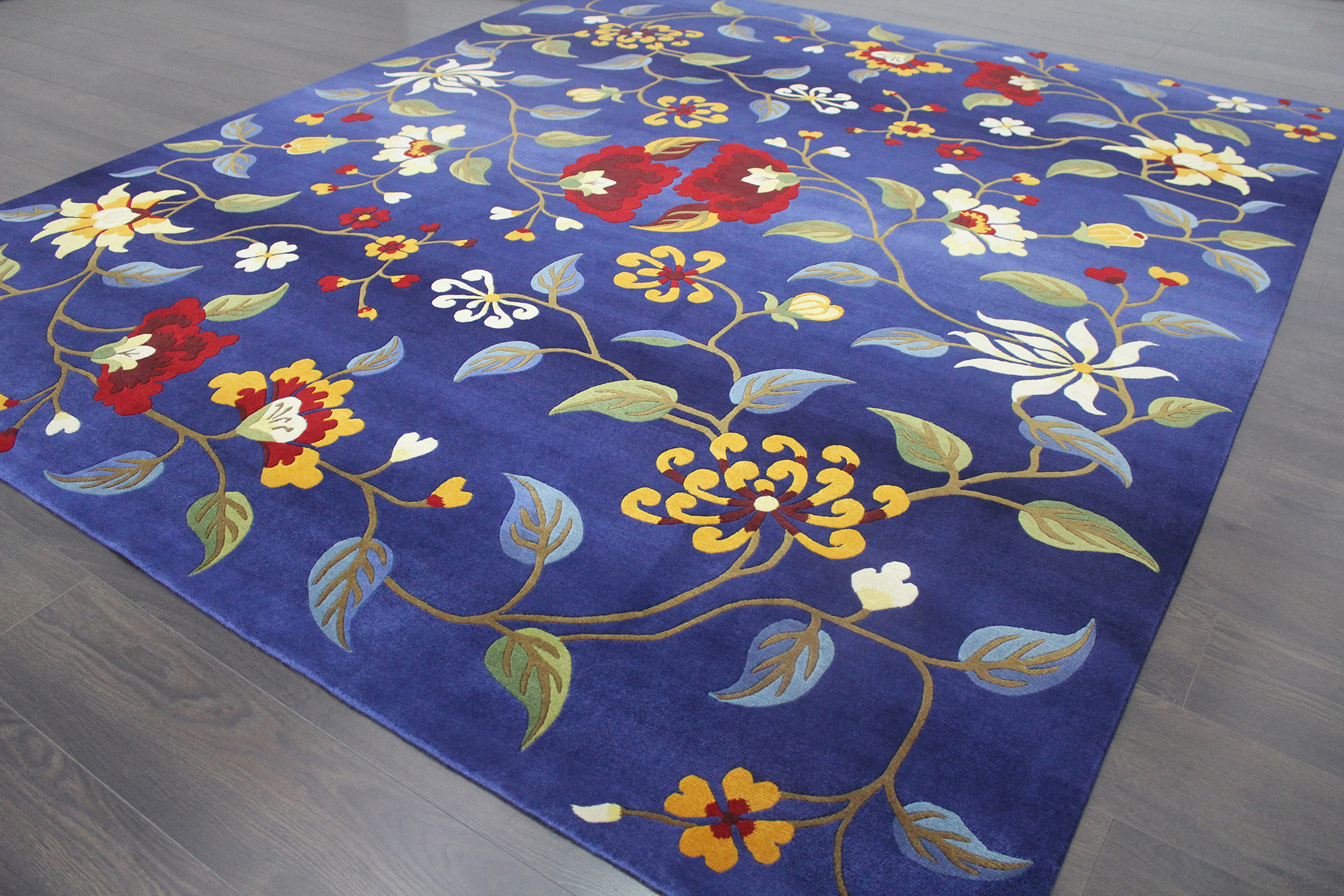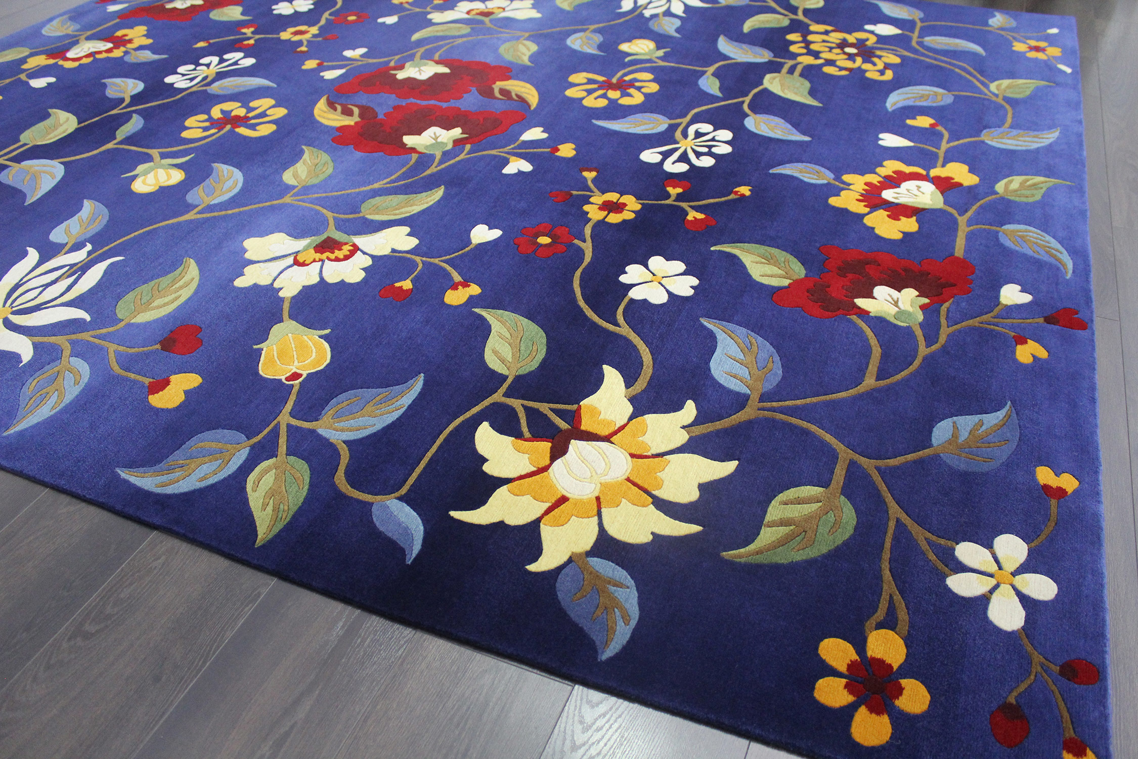 • The Floral Tibetan Rug is hand-knotted in Kathmandu, Nepal. It is woven with a density of 100 knots per square inch. it features a total of 1,166,400 knots. Three skilled workers dedicated four months to creating this exquisite piece. What would you use instead if you didn't have this carpet in the room? so buy it now